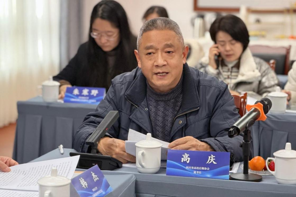 四川省高校后勤协会秘书长高庆传达了四川省高校后勤协会四届一次会员大会会议精神,介绍了协会2025年重点工作及2026年工作计划。他强调,思政会下一步应全面推动后勤工作提质增效,重点围绕以下三方面:一是强化后勤文化建设,凝聚价值认同;二是加强后勤宣传培训,提升队伍素质;三是加强规范管理,夯实服务保障基础。