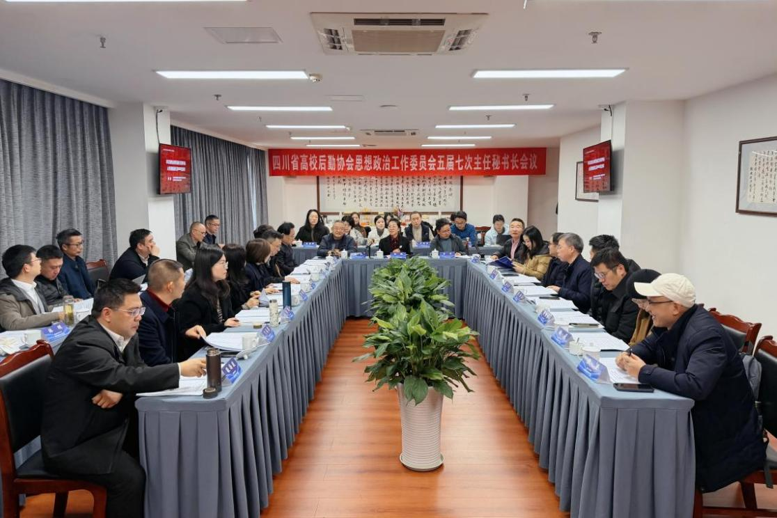 2025年12月12日,四川省高校后勤协会思想政治工作委员会第五届主任秘书长会第七次会议在西南民族大学文瀚学术交流中心召开。四川省学?;窘ㄉ栌牒笄诓抵行母咝:笄诓悼瓶瞥し搅?、省高校后勤协会秘书长高庆出席会议,思政会主任秘书长单位负责人40余人参加会议。会议由四川省高校后勤协会思政会主任、西南民族大学后勤党委书记伍敏主持。