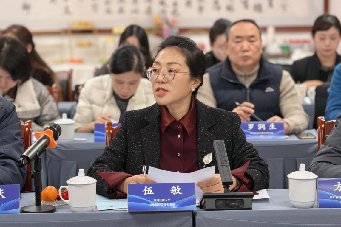 西南民族大学后勤党委书记伍敏作《思政会2025年工作报告及2026年工作计划》报告,从强化思想引领、聚焦作风建设、谱写育人篇章、推动协同共治等方面总结了2025年工作成效,系统部署2026年重点任务。与会代表就思政会下一步工作安排及思政会五届四次全体会议筹备工作进行了讨论。会议审议并通过了思政会第五届主任秘书长人员调整建议及2025年名单。