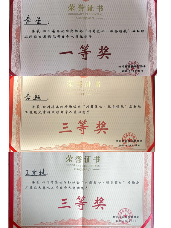 此次获奖不仅彰显了西南民族大学后勤员工在绿化养护、能源服务等领域的专业水准,更印证了学校在后勤队伍建设、技能培训与服务创新方面的扎实成效。西南民族大学后勤保障处将以此次大赛为契机,深入弘扬“川蜀工匠”精神,持续精进服务品质、提升管理效能,为建设和谐美丽校园、助力学校高质量发展注入更强劲的后勤力量。